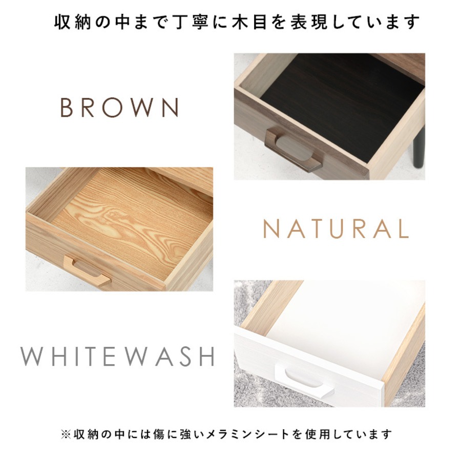 素材:天板:<ブラウン>MDFウォールナット突板(UV塗装)・<ナチュラル>MDFタモ突板(UV塗装)、脚:樺材(ラッカー塗装)