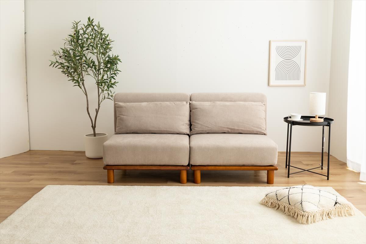 肌触りの良いファブリック生地と温かみのある天然木の組み合わせで、季節を問わず1年中お使いいただけます。