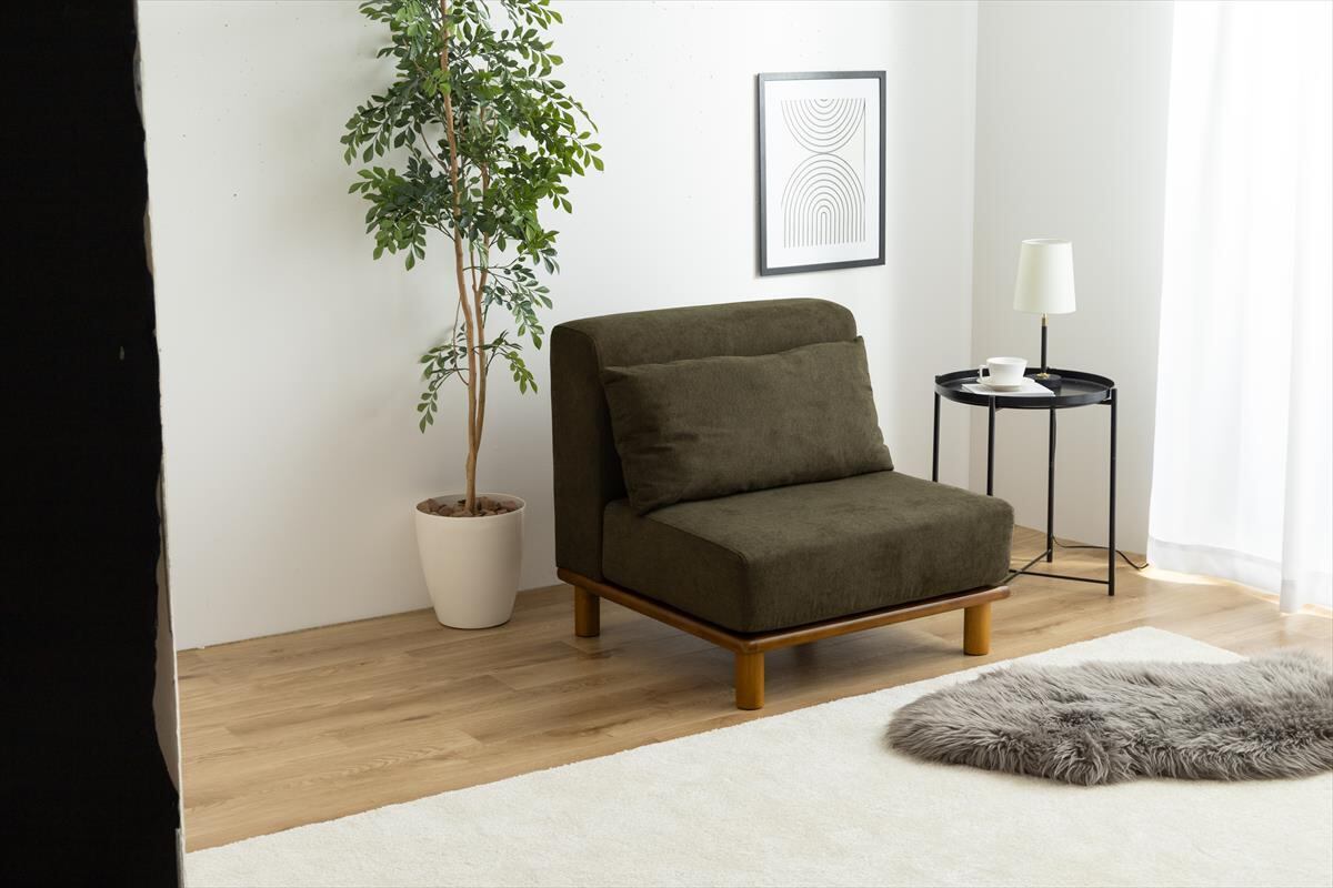 落ち着いた色味とコンパクトなサイズ感で、お部屋のどこに置いても馴染みやすいデザインです。深く沈み込まない弾力のある座面で、長時間座っていても疲れにくくリラックスタイムをゆっくりお楽しみいただけます。
