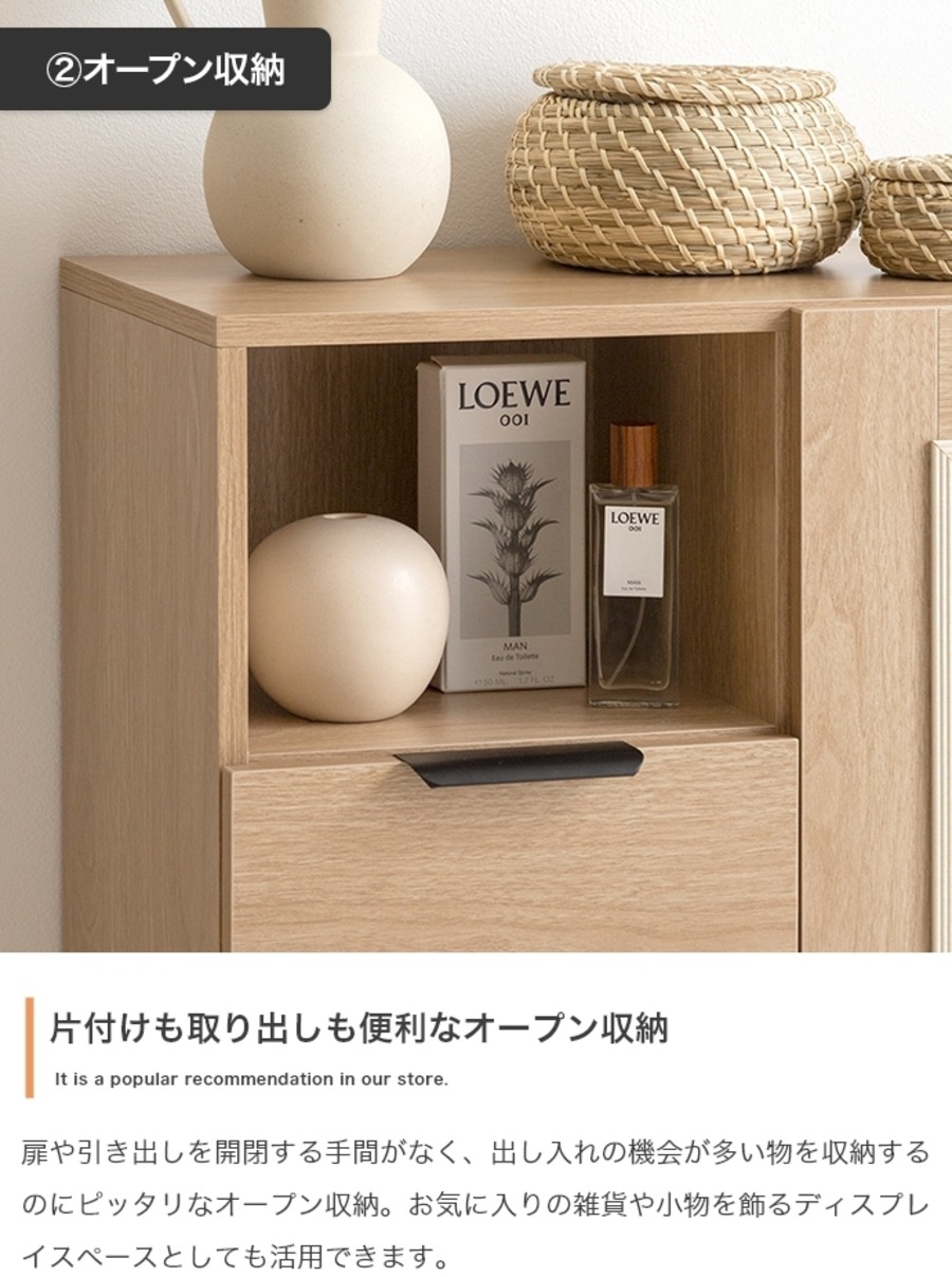 リビングや寝室、オフィスなど、さまざまなシーンで活躍し、豊富な収納力を持つ一品です。