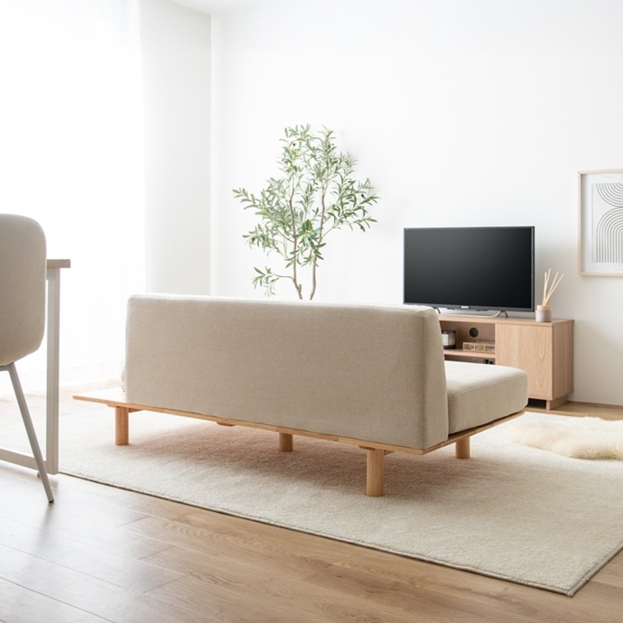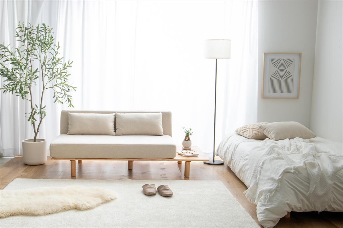 サイドテーブル一体型の『Monica(モニカ) 』2人掛けソファ。手が届く位置に物を置けるサイドテーブルは、お部屋のレイアウトに合わせて左右入れ替え可能。圧迫感を抑えたコンパクトなロー設計で、一人暮らしやワンルームのお部屋にもぴったりです。清潔感とナチュラルな明るさが溢れるシンプルデザインで、北欧スタイルはもちろん、海外インテリア風など幅広いテイストのお部屋に馴染みます。コンパクトながらアームレスでゆとりがあるこだわりのデザインで、ほっと一息つける癒しの時間をお過ごしください。
