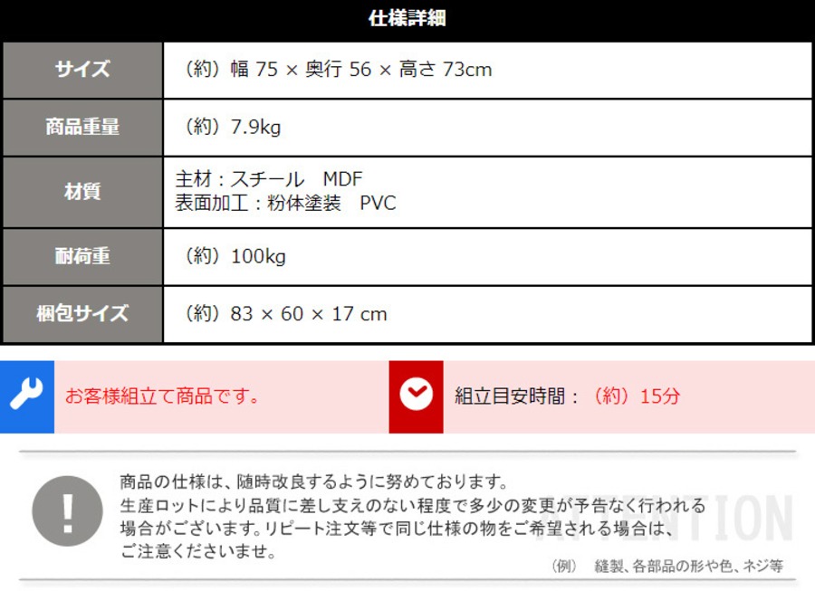 【商品サイズ】W75×D56×H73cm