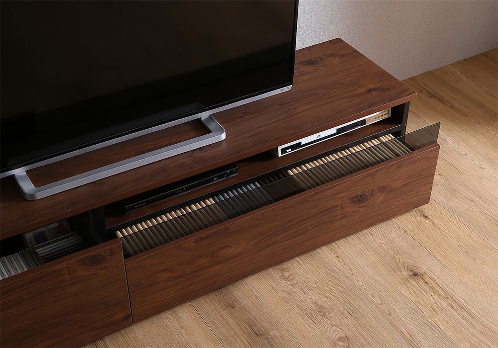 引き出し付きで、リモコンやDVD、書籍などをスッキリと整理可能です。