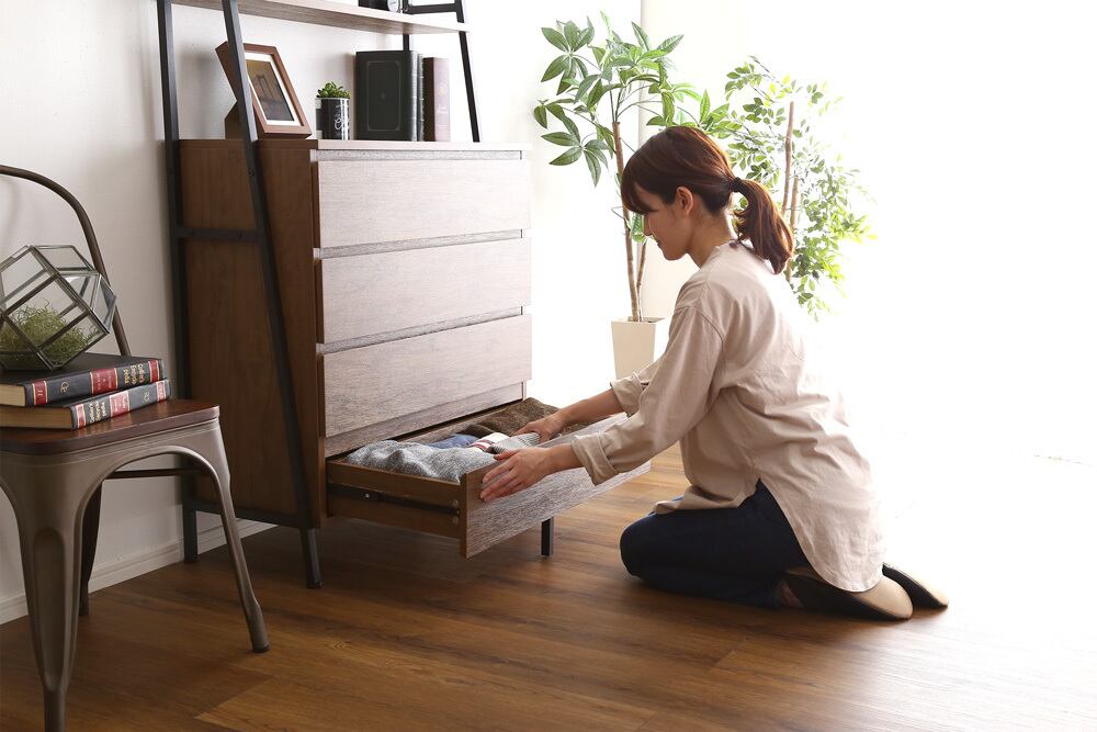 オールチェストタイプの設計により、大容量の収納が実現し、衣類や雑貨、書類などをスッキリと整理できます。